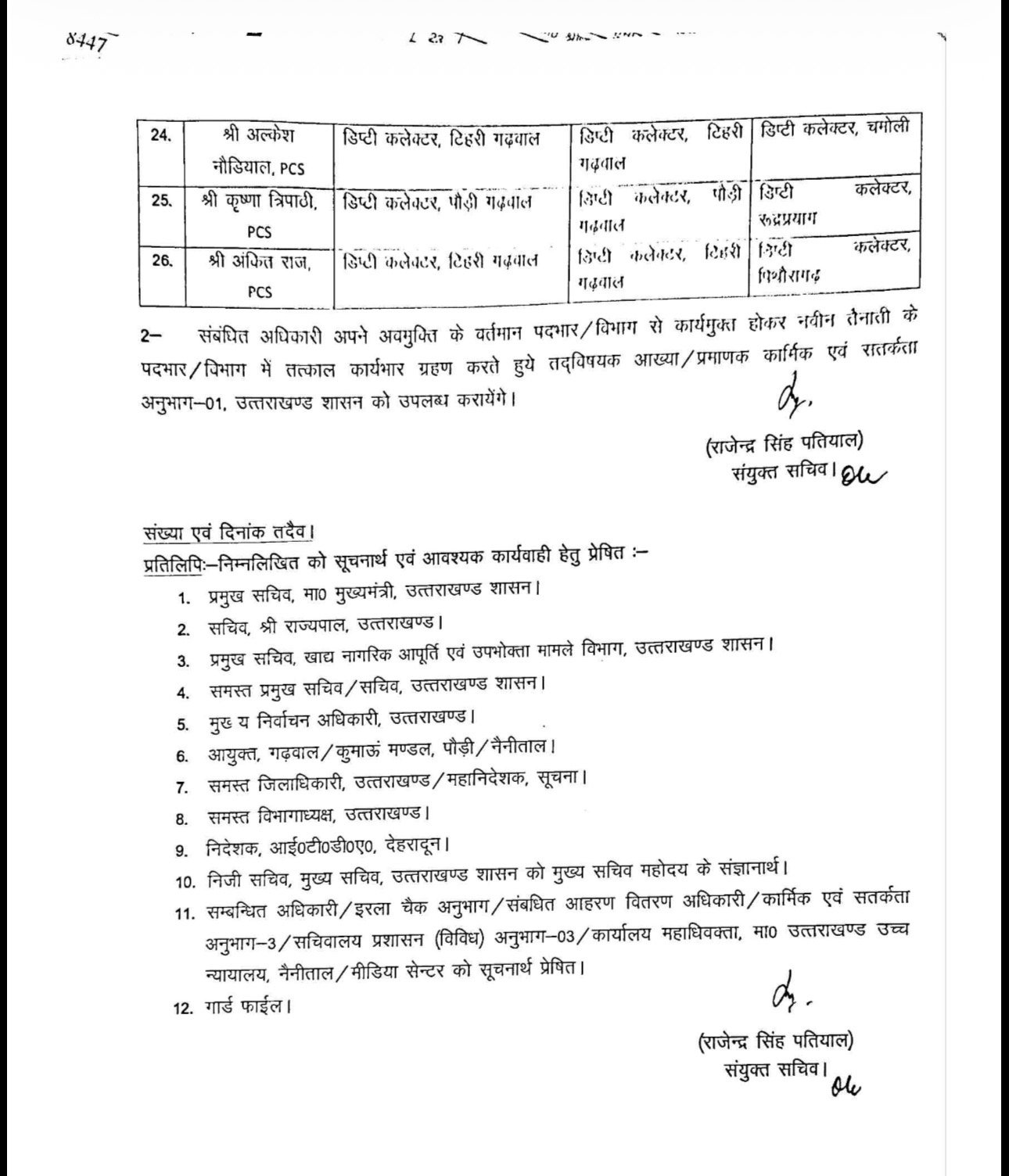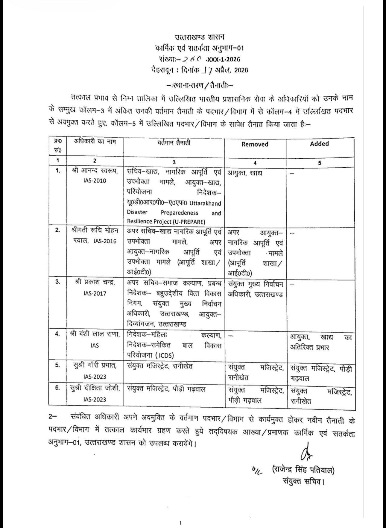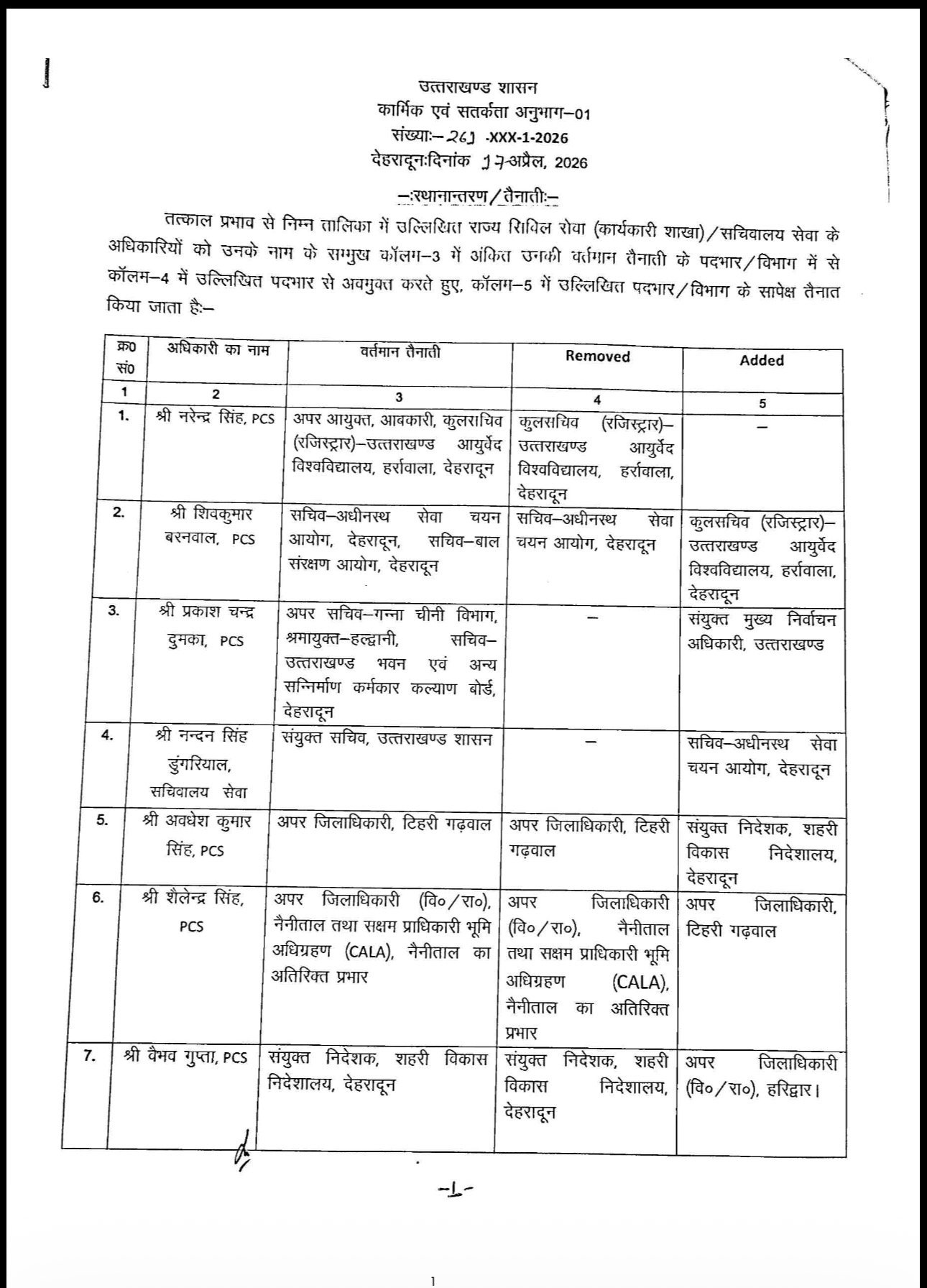 IAS-PCS Officers Transfers: उत्तराखंड की पुष्कर सिंह धामी सरकार ने शुक्रवार शाम को छह आईएएस अधिकारियों टेढ़ा 26 पीसीएस अधिकारियों के दायित्वों में फेरबदल कर दिया है।