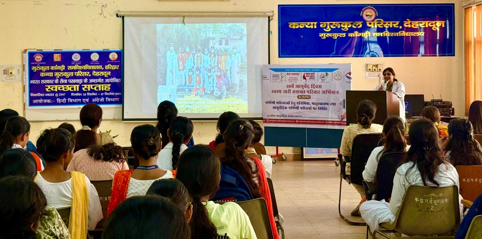 देहरादून: गुरुकुल कांगड़ी समविश्वविद्यालय के देहरादून स्थित कन्या परिसर में भारत सरकार के सेवा पखवाड़ा के अंतर्गत आयोजित स्वच्छता सप्ताह के दौरान 24 सितंबर को ‘व्यक्तिगत स्वच्छता एवं नशा मुक्ति जागरूकता’ विषय पर व्याख्यान का आयोजन किया गया। इस अवसर पर मुख्य वक्ता के रूप में डॉ. रत्ना त्रिपाठी, प्रभारी चिकित्सा अधिकारी, राजकीय आयुर्वेदिक चिकित्सालय, देहरादून ने विषय से जुड़े महत्वपूर्ण पहलुओं से छात्राओं को अवगत कराया।